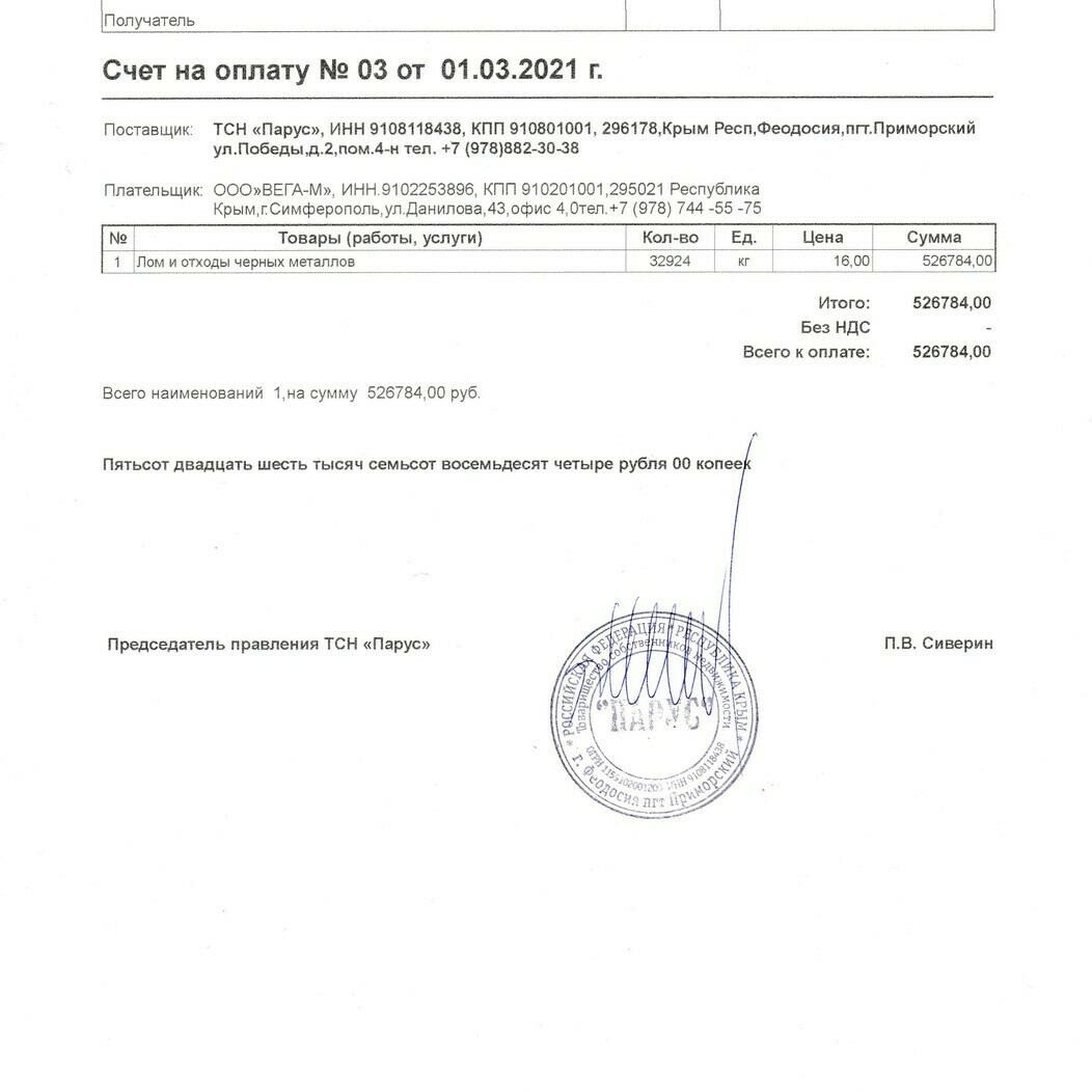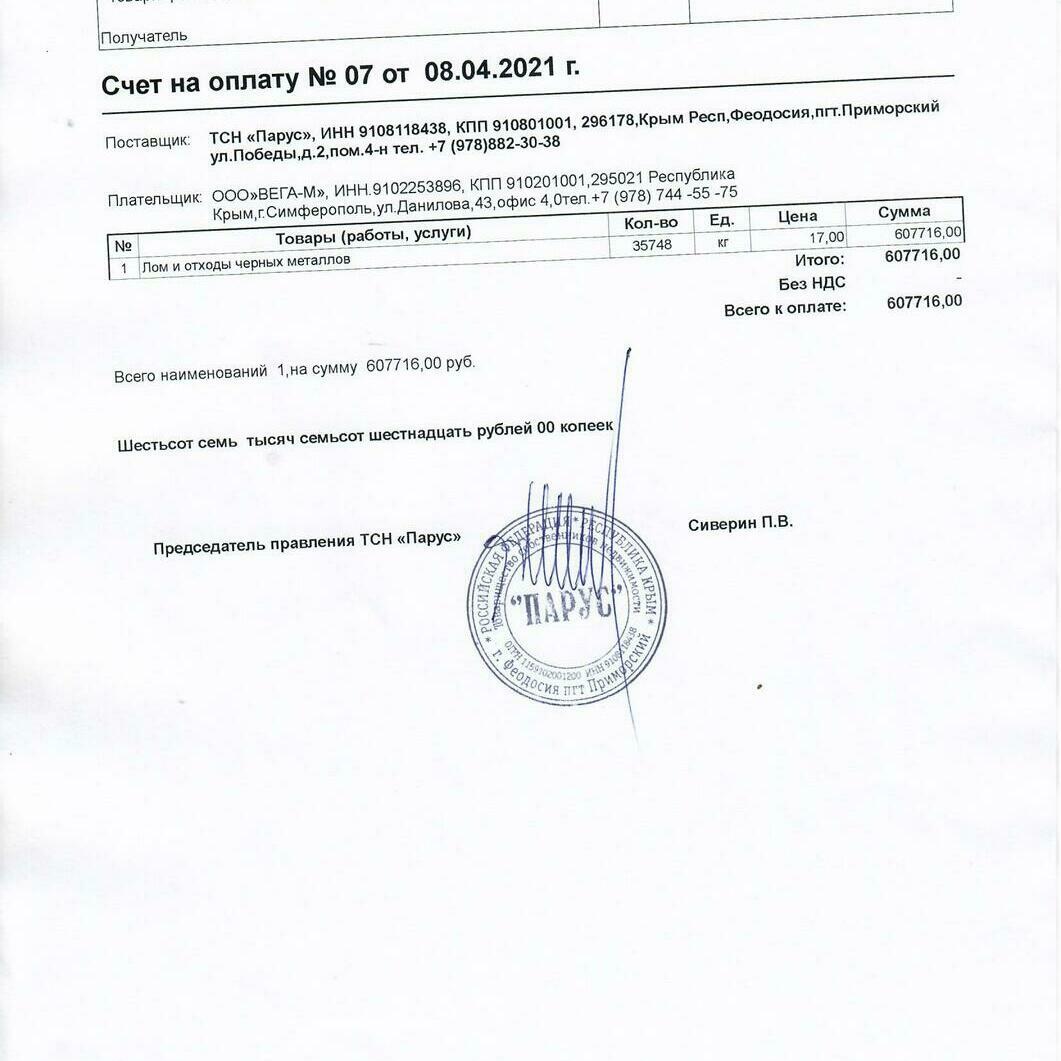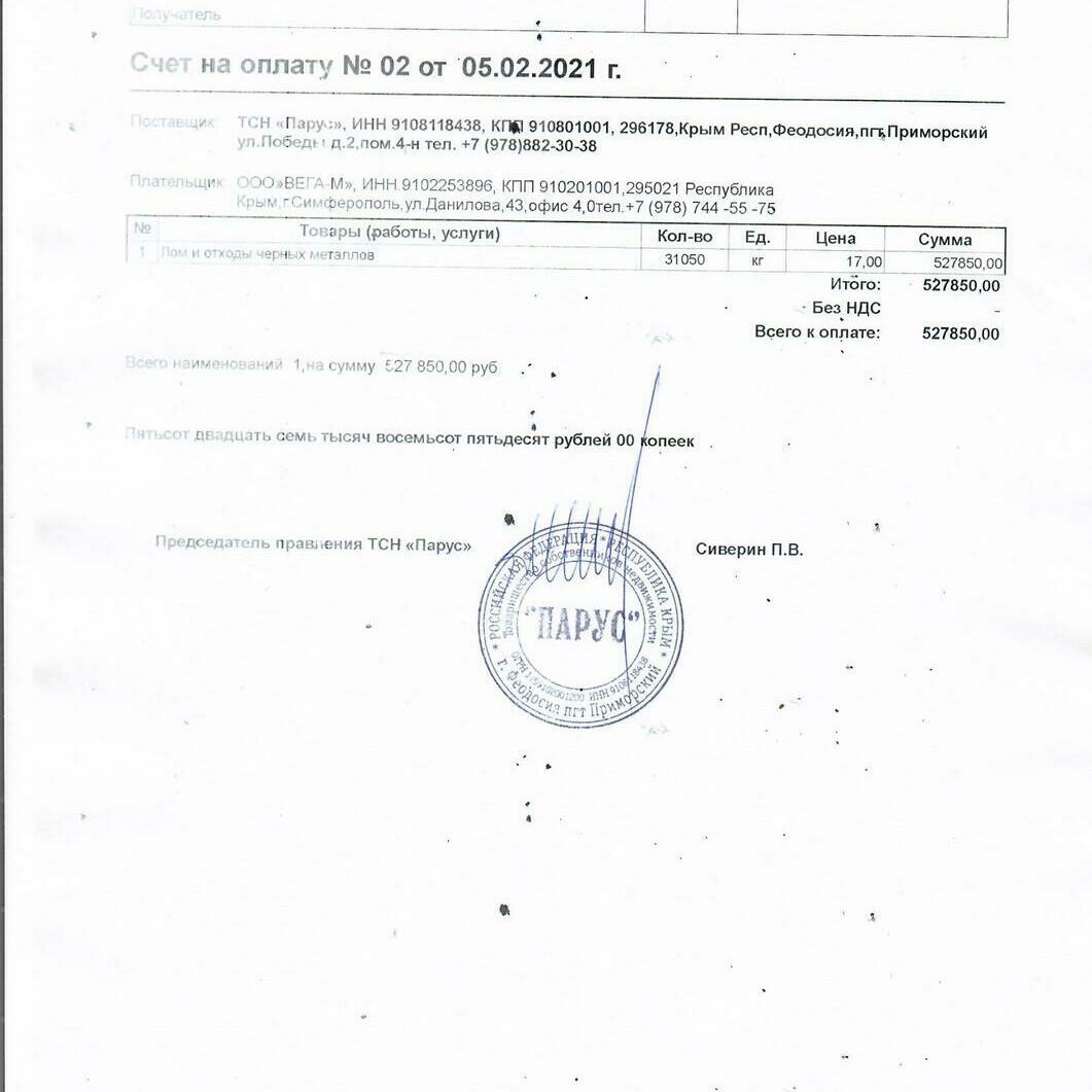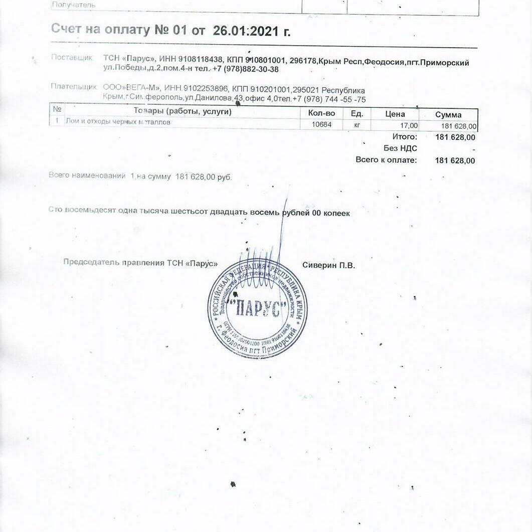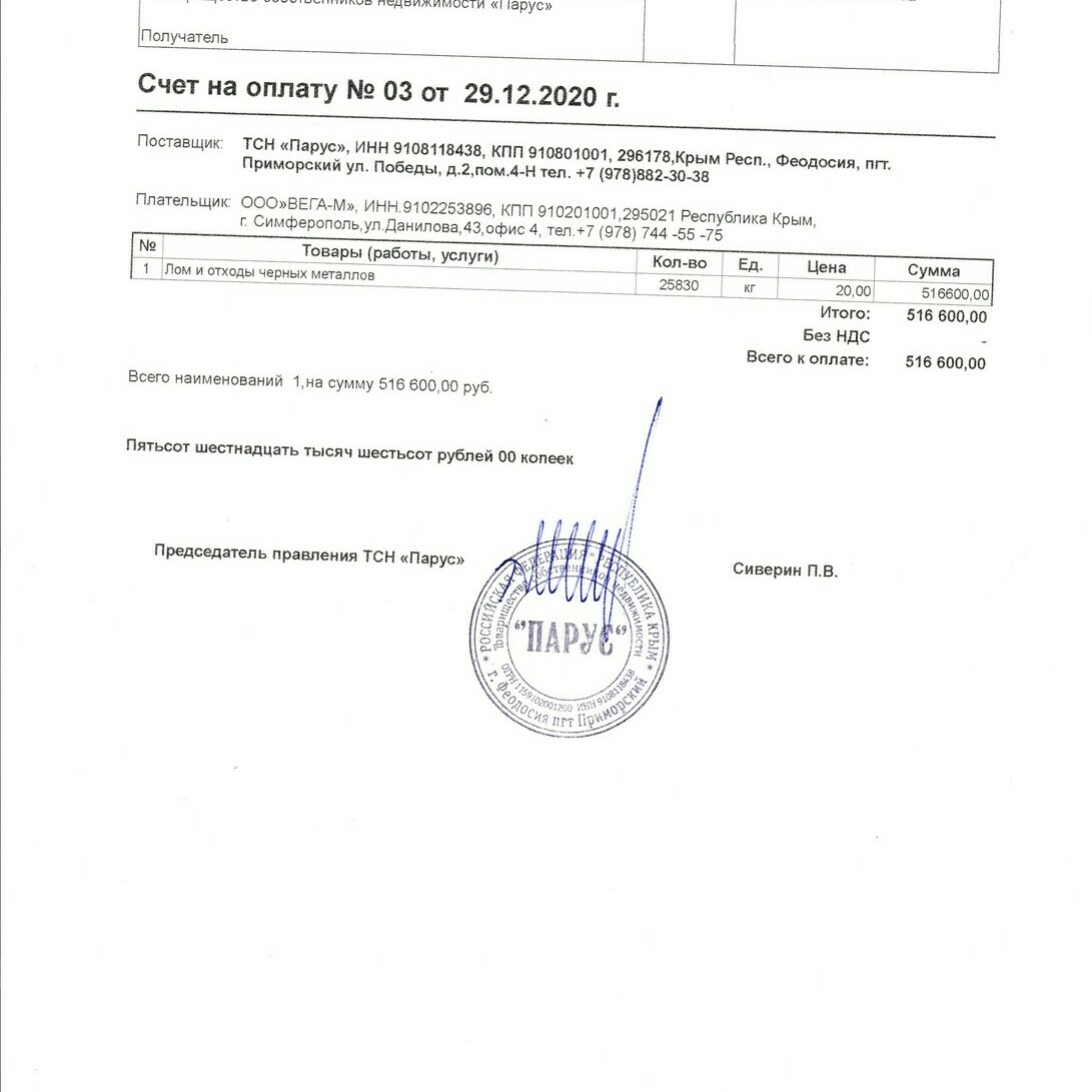 15. 20.12.2020 года был заключен договор с ООО "ВЕГА" г. Симферополь на прием лома и отходов черного металла.