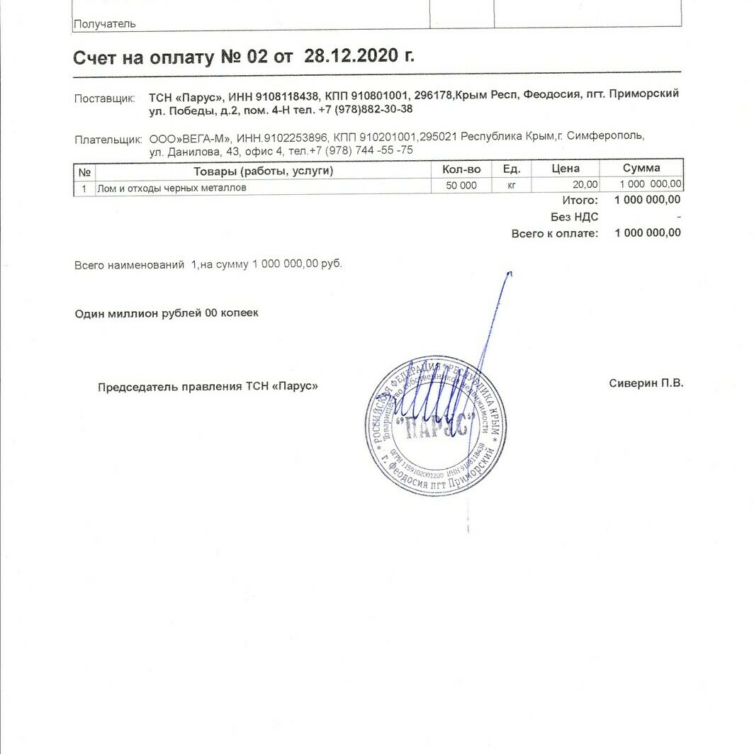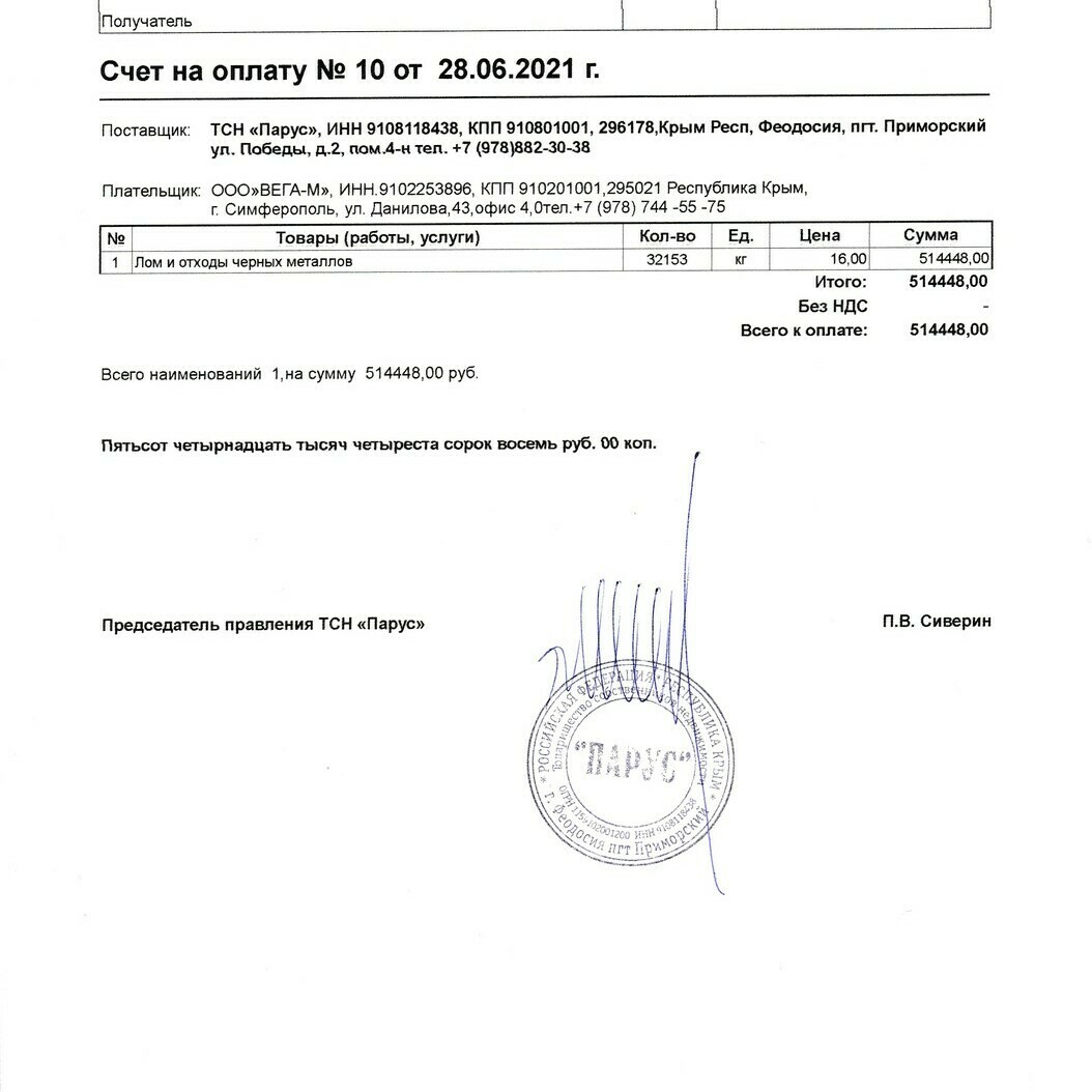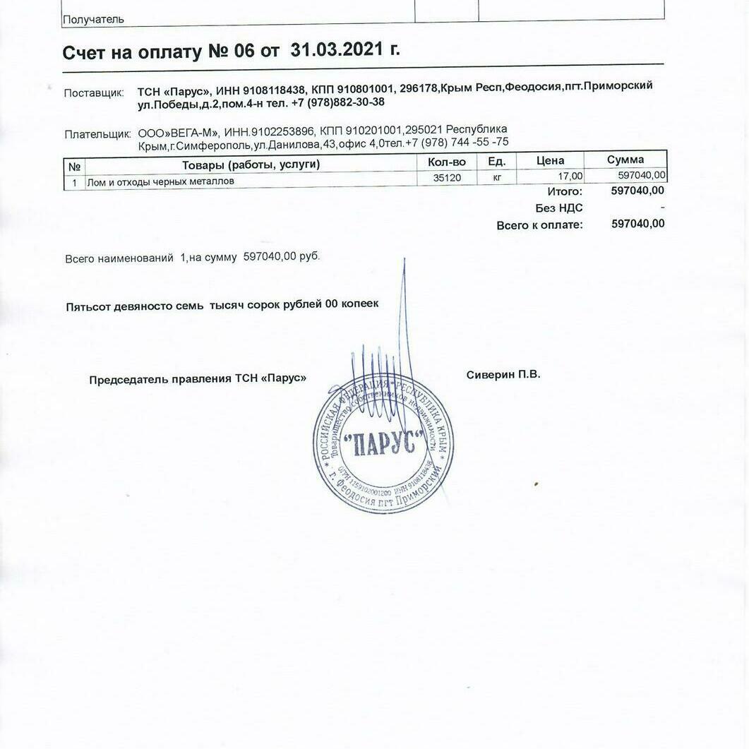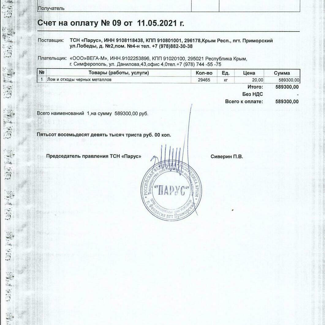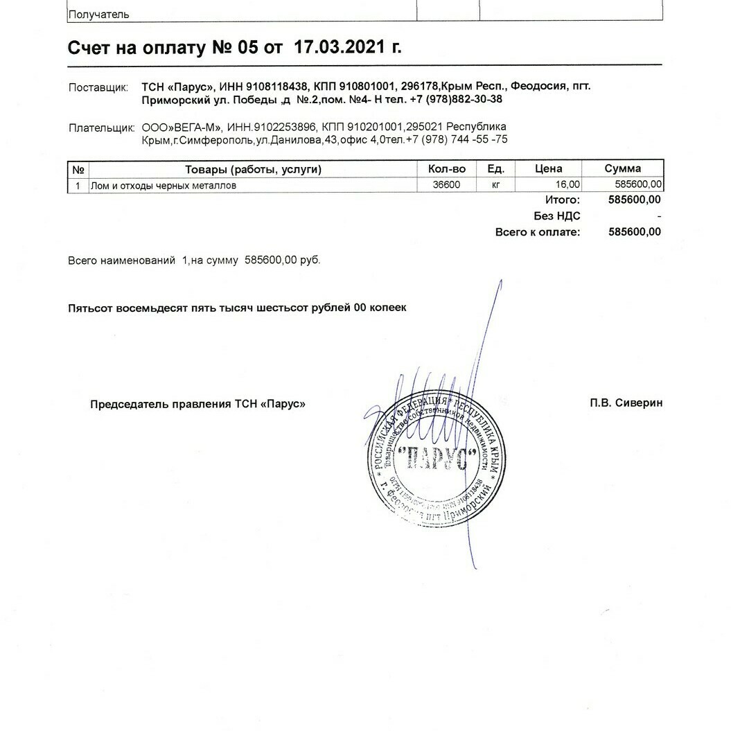 15. 20.12.2020 года был заключен договор с ООО "ВЕГА" г. Симферополь на прием лома и отходов черного металла.