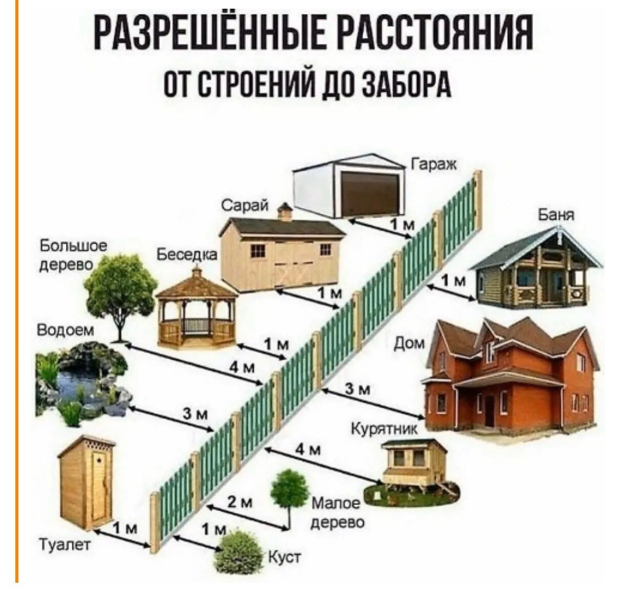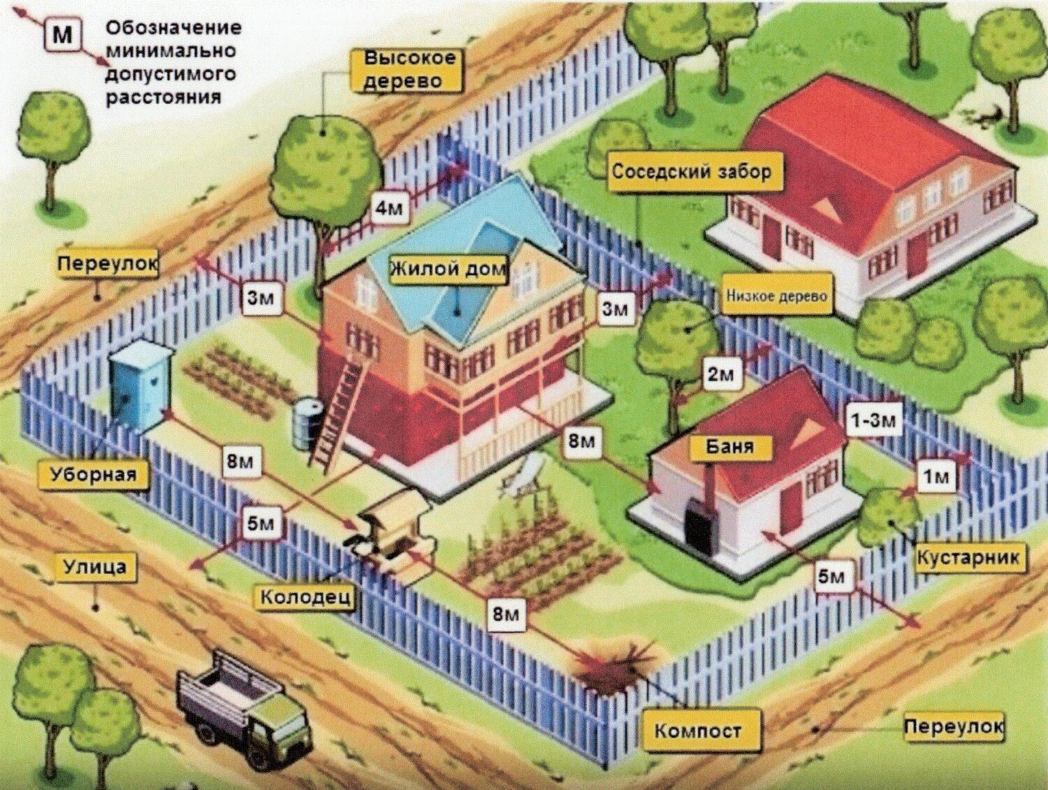 МИНИМАЛЬНО ДОПУСТИМЫЕ РАССТОЯНИЯ МЕЖДУ ОБЪЕКТАМИ НА УЧАСТКАХ.