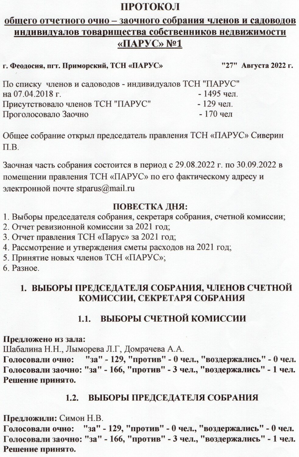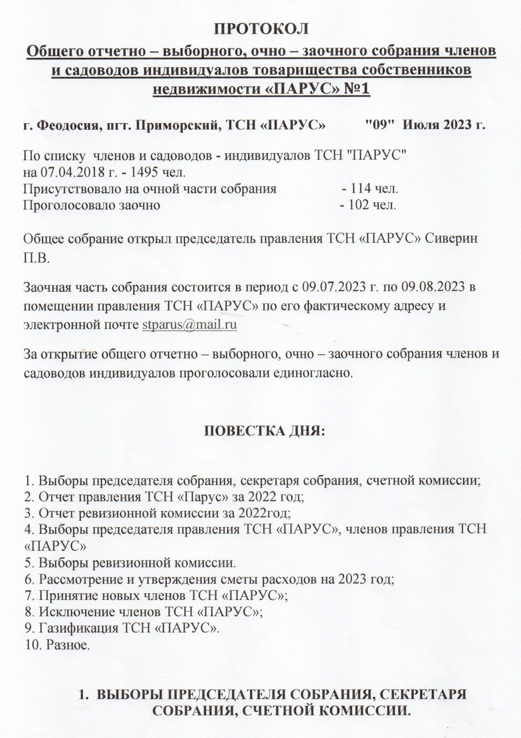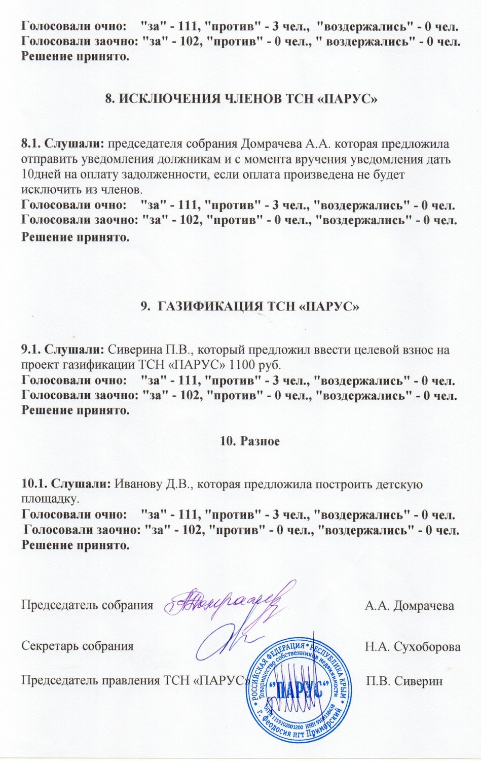 Собрание в ТСН "Парус", Приморский, Феодосия.