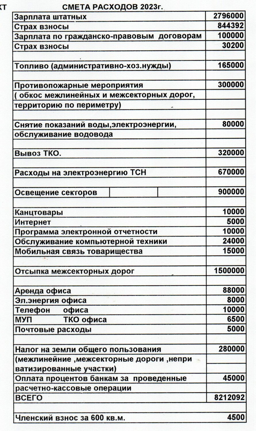 1. Годовой членский взнос за 6 соток - 4500 руб., оплатить до 01.01.2023 года