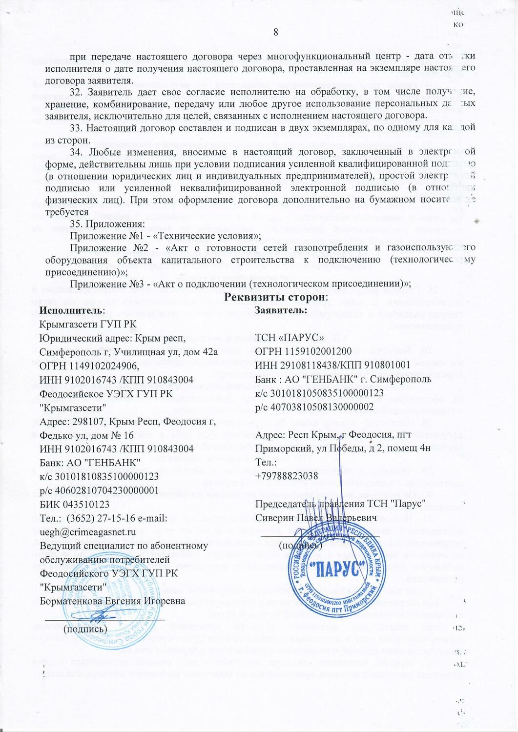 Правлением ТСН «ПАРУС» проведена работа по получению технических условий на подключение (технологическое присоединение) газоиспользующего оборудования и объектов капитального строительства к сетям газораспределения в рамках догазификации. Правило подключения можно почитать тут: постановление Правительства РФ от 13 сентября 2021 года №1547. что касается не поссредственно нас, пункт 126 раздела VII Правил подключения.