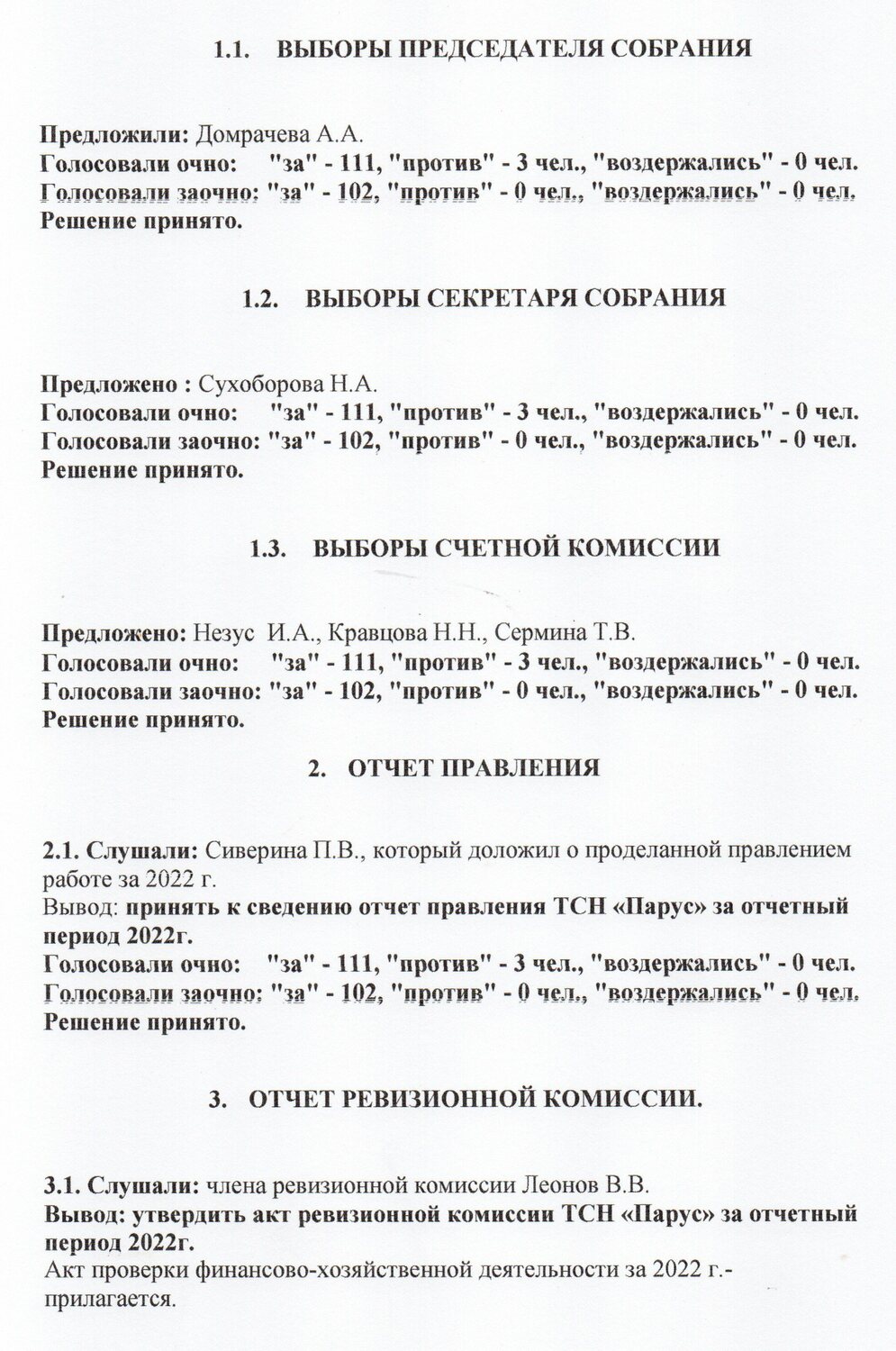 СОБРАНИЕ ТСН "ПАРУС"ОТ 14.12.2019